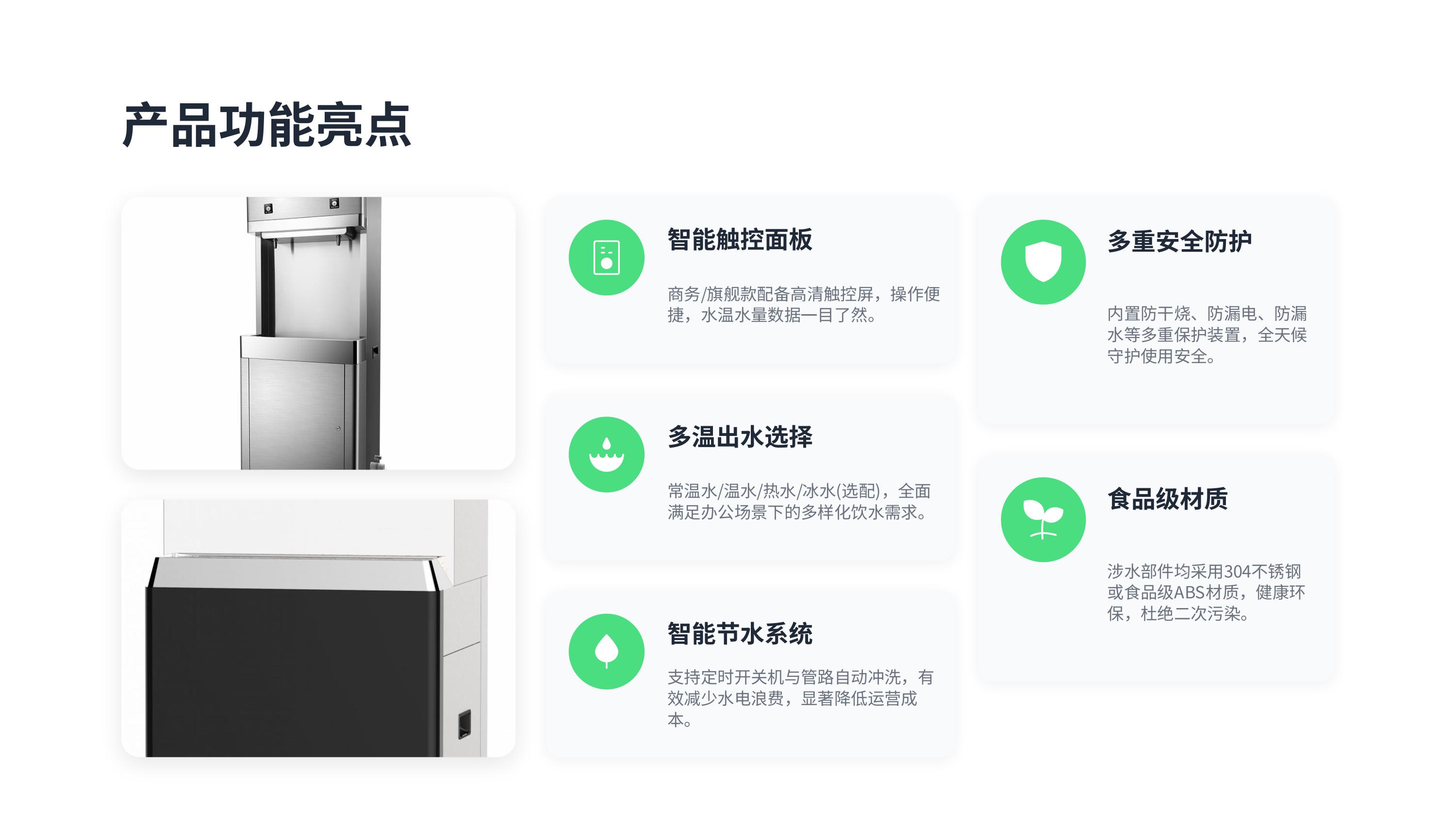 💰 比桶装水省 50%–70% 成本🛡️ 水质合规,杜绝安全风险❤️ 提升员工福利与满意度♻️ 绿色办公,提升企业形象⚡ 即取即用,提高办公效率